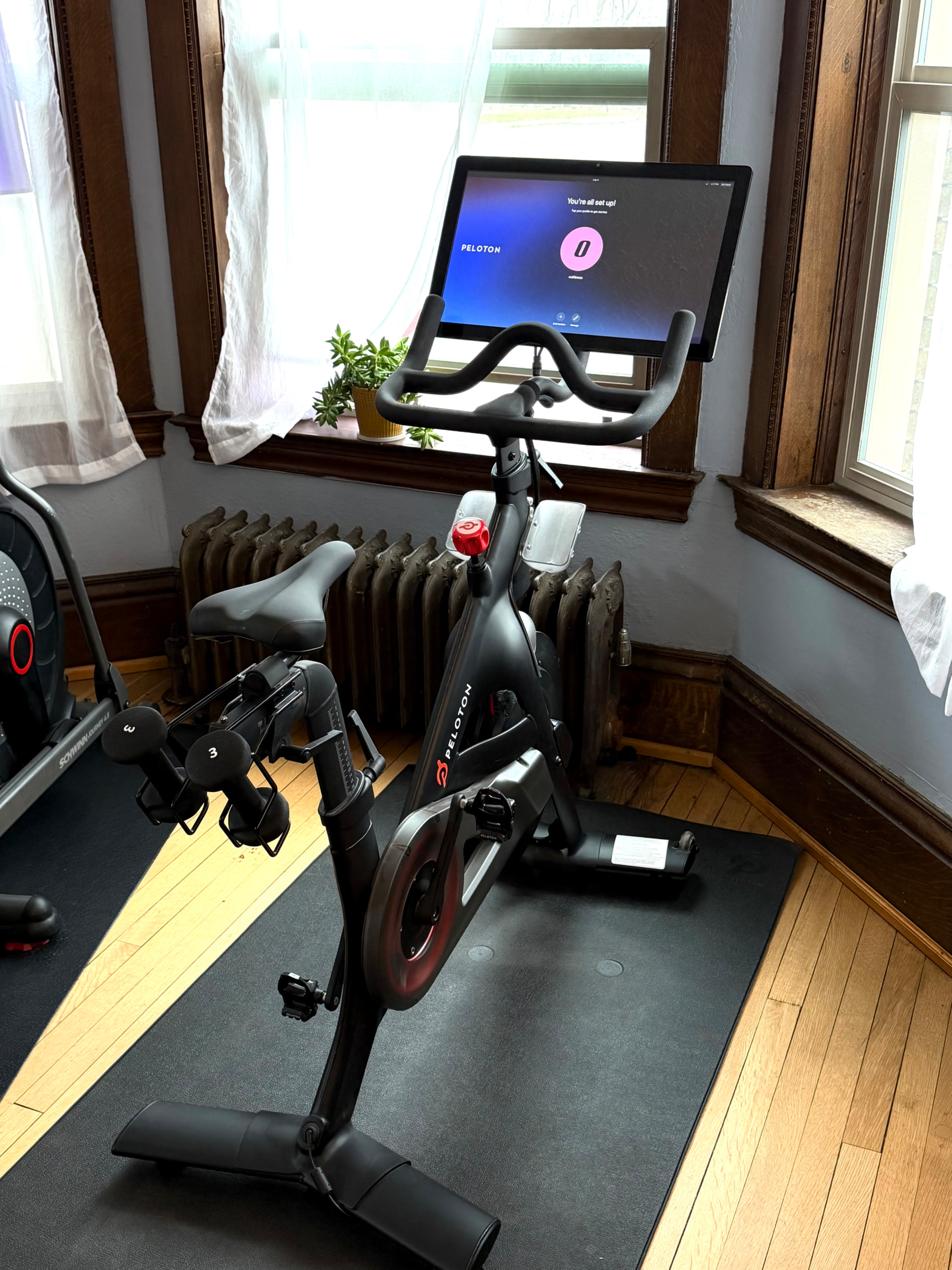 We now have a new Peloton spin bike and the library of Peloton workout classes, thanks to a SUPER generous donation by our neighbor Susan!